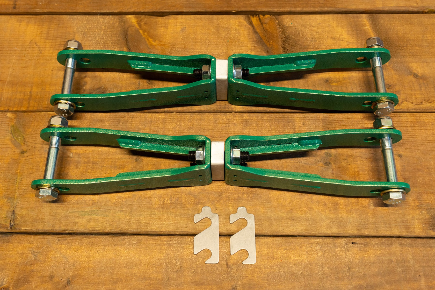 Built from high-strength alloy steel, these arms are far stronger than factory components, eliminating flex and deformation when pushing limits through curbing, bumps, or off-track excursions. Each arm features our proven shim adjustment system, allowing precise and repeatable alignment changes without removing the arm — a key advantage for competitive setups where every millimeter matters.